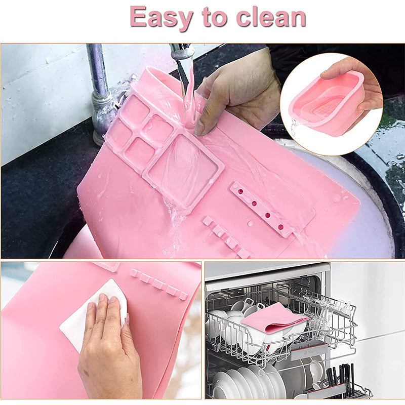- 🔎 The silicone craft mats are large enough to prevent paint splashes and have waterproof grooves around the edges to prevent them from escaping, the silicone mats prevent scratching and soiling your table and keep it neat and tidy.